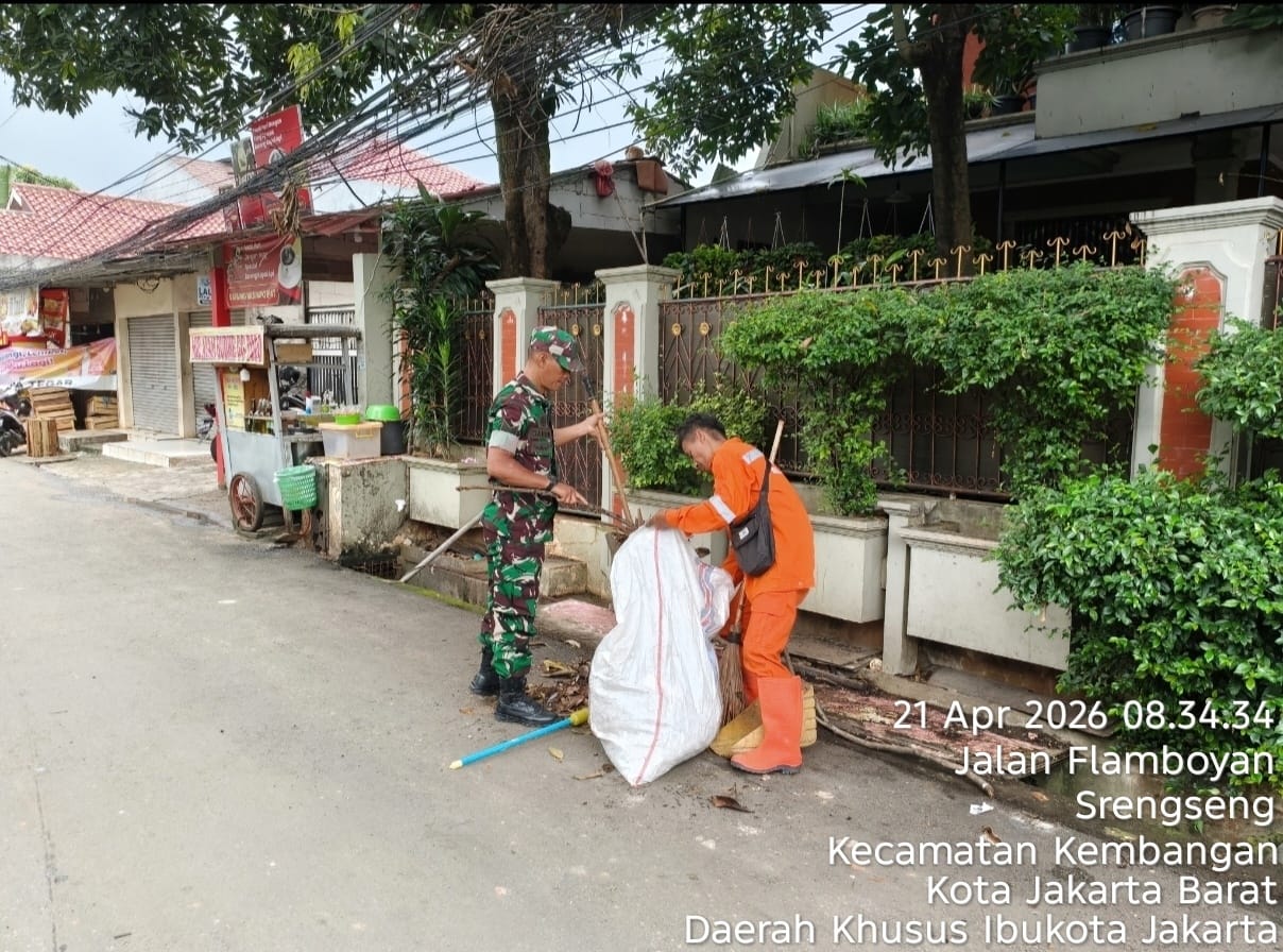 DetikSR.id Kodam Jaya Jakarta – Upaya mewujudkan lingkungan yang bersih dan sehat, Koramil 07/Kembangan mengadakan kegiatan Pembersihan di Sekitar Lingkungan Jl. Flamboyan Rt 05/02 Kel.Srengseng , Kec. Kembangan, Jakarta Barat. Selasa 21 April 2026.