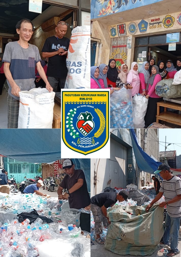 Mengumpulkan hasil penimbangan warga yang dikerjakan oleh Ketua Rw.010 H. Rakib beserta Ketua PKW.010 Junaedi bersama Kantib 1 Komar Komeng Kantib 2 Kusnadi/Peang dibantu petugas linmas setelah di pilah bersama-sama lalu di jual ke pengepul barang barang bekas dan uang hasil penjualan disatukan dengan hasil sumbangan dari tiap bulannya dari para Ketua Rt yg peduli serta LMK juga ibu ibu PKK Dawis Jumantik Petugas Linmas yang di prakarsai Kantib Rw.010 juga tomas toga dan warga RW.010 minimal 50 ribu tiap bulannya.