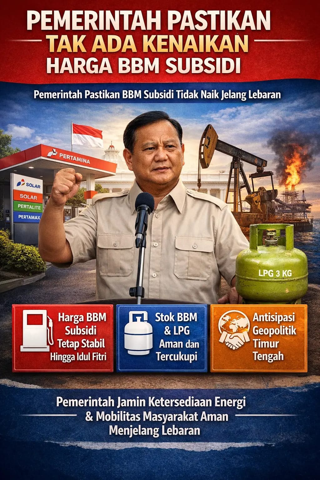 “Kami sudah mengantisipasi bahwa stok BBM kita untuk menjelang Hari Raya Idul Fitri aman, termasuk dengan LPG. Jadi tidak perlu ada keraguan sekalipun terjadi dinamika global,” Bahlil menegaskan.