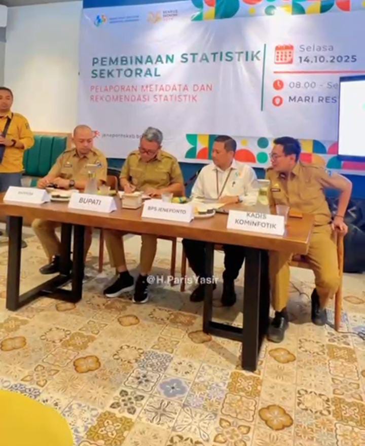 DetikSR.id Jeneponto, 14 Oktober 2025 — Pemerintah Kabupaten Jeneponto bekerja sama dengan BPJS Ketenagakerjaan Jeneponto melaksanakan kegiatan pembinaan statistik sektoral sekaligus pengisian aplikasi Romantik (Ruang Kolaborasi Statistik) yang berlangsung di Mari Resto, Selasa (14/10/2025).