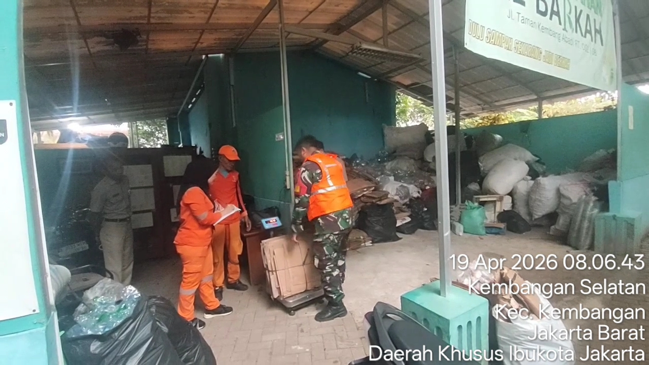DetikSR.id Kodam Jaya Jakarta – Dalam rangka menindaklanjuti perintah Danrem 052/Wkr terhadap penanganan darurat sampah di wilayah Kodim 0503/JB, Babinsa Koramil 07/Kembangan yang juga Satgas Sampah Koptu Niko Perdana melaksanakan Pembersihan dan pemilahan sampah di lokasi BANK SAMPAH BERKAH Jl. Taman Kembangan Abadi Utama RT 01 RW 08 Kel. Kembangan Selatan , Kec Kembangan Jakarta Barat. Minggu 19 April 2026.