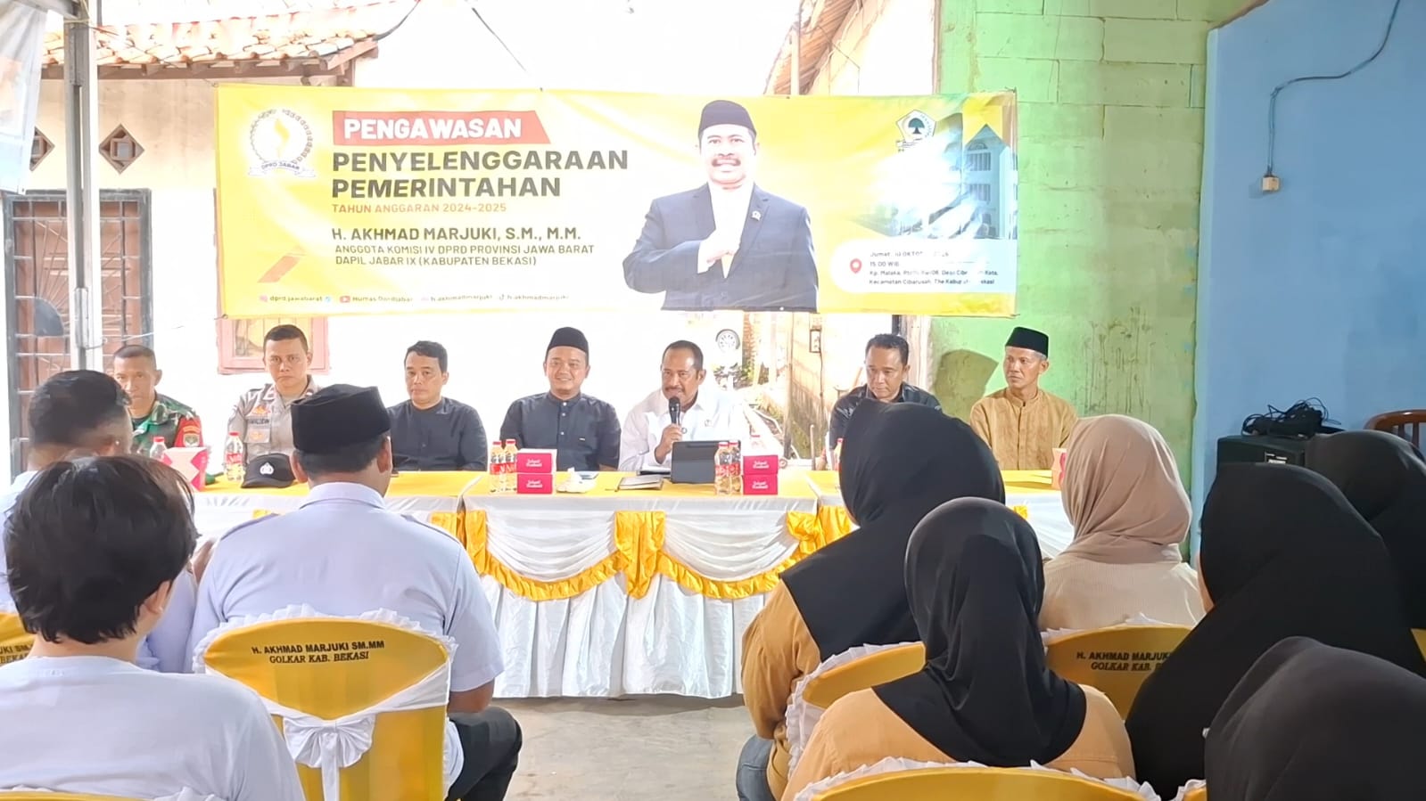 DETIK-DETIK. ID Bekasi – Anggota DPRD Provinsi Jawa Barat Komisi IV dari Fraksi Partai Golkar Dapil Jabar IX, Akhmad Marjuki, SM.MM, melaksanakan kegiatan Pengawasan Penyelenggaraan Pemerintahan Tahun Anggaran 2024–2025 di Desa Cibarusah Kota, Kecamatan Cibarusah, Kabupaten Bekasi, Jumat (10/10/2025) siang.
