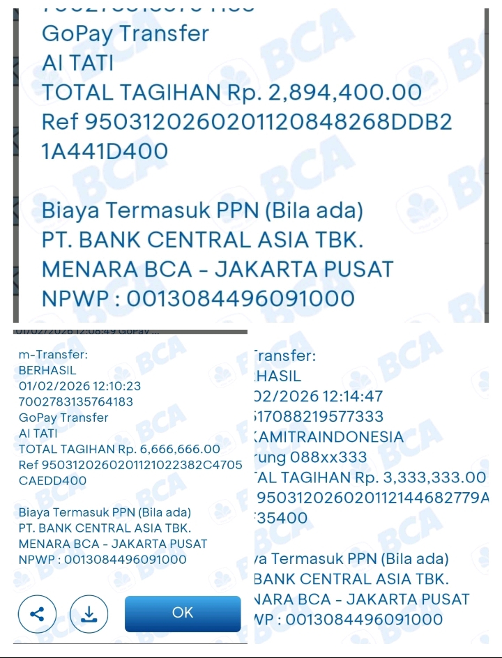 Atas nama AI TATI (sebanyak 2 kali transfer)