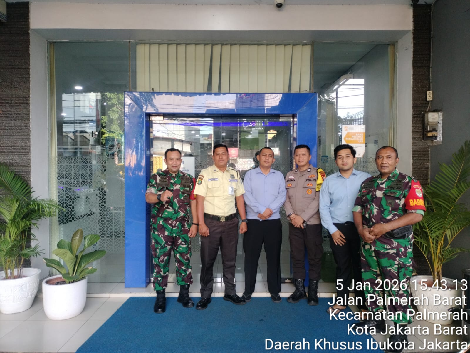 Pemimpin Cabang BRI BO Palmerah, Panji Kurniawan, menyampaikan bahwa sinergi dengan unsur TNI, Polri, dan pemerintah kelurahan merupakan bagian penting dalam menjaga keamanan serta kelancaran operasional perbankan.