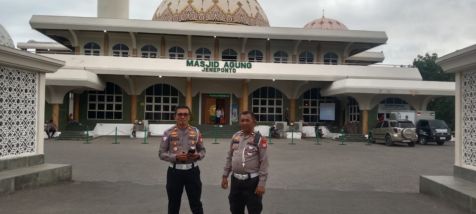 Pengamanan dilakukan secara menyeluruh, baik di area dalam maupun luar masjid, termasuk pengaturan lalu lintas dan pengamanan parkir untuk memastikan jalannya kegiatan berlangsung aman, tertib, dan kondusif.