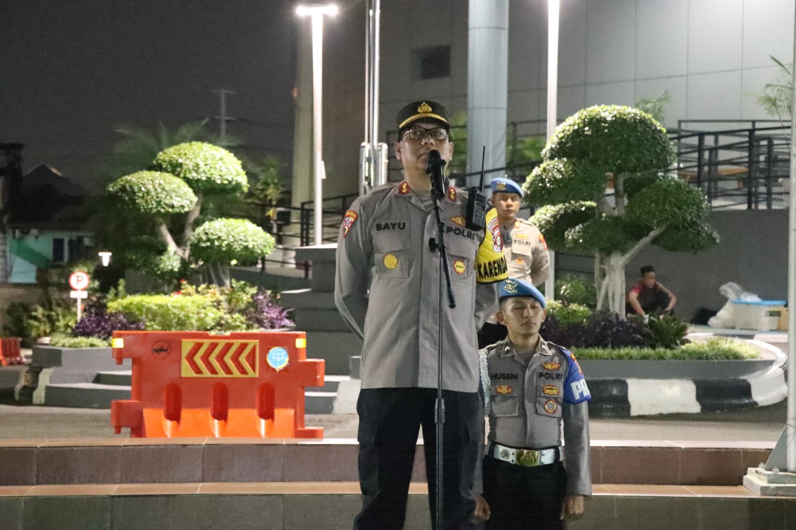 Kegiatan apel dimulai pukul 23.00 WIB dan dipimpin langsung oleh AKBP Tri Bayu Nugroho, S.E., M.M, yang menjabat sebagai Kabagops.