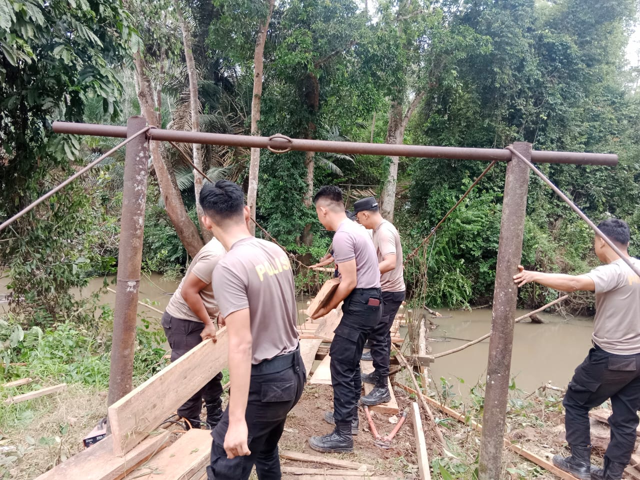Polres Musi Rawas Rehabilitasi Jembatan Gantung Penghubung Dua Desa di Kecamatan Suka Karya