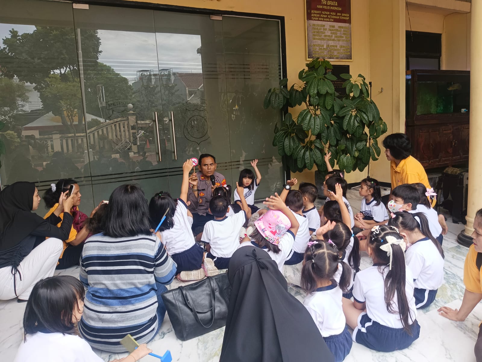 Puluhan siswa-siswi TK Regina Caeli tampak antusias mengikuti kegiatan “Polisi Sahabat Anak” yang dipimpin oleh Kanit Binmas Polsek Kembangan, Iptu I Wayan Sumberjaya, S.H.