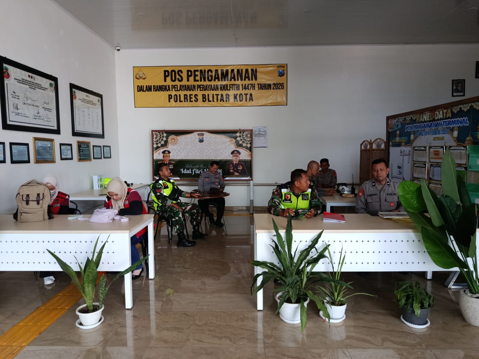 DetikSR.id Blitar – Dalam menyambut Hari Raya Idul Fitri 1447 H, Bintara Pembina Desa (Babinsa) Hariyanto bersama aparat gabungan melaksanakan pengamanan di Pos Pengamanan (Pospam) yang berada di titik-titik keramaian, salah satunya di Terminal Bus Patria Kota Blitar, Jumat (20/3/2026). Kegiatan ini dilakukan guna memastikan situasi tetap aman dan kondusif menjelang arus mudik Lebaran.