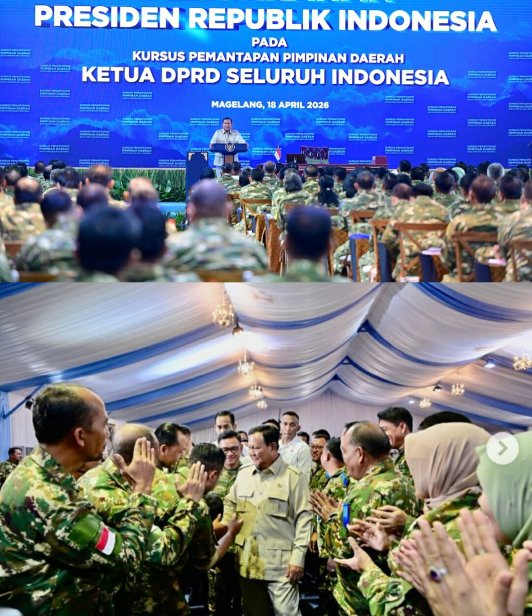 Ajakan tersebut disampaikan Presiden Prabowo saat memberikan pengarahan kepada 503 ketua DPRD provinsi, kabupaten, dan kota dari seluruh Indonesia dalam kegiatan retret Kursus Pemantapan Pimpinan Daerah (KPPD) yang diselenggarakan Lembaga Ketahanan Nasional (Lemhannas) RI di Akademi Militer (Akmil), Magelang, Jawa Tengah, pada (18/4/2026).