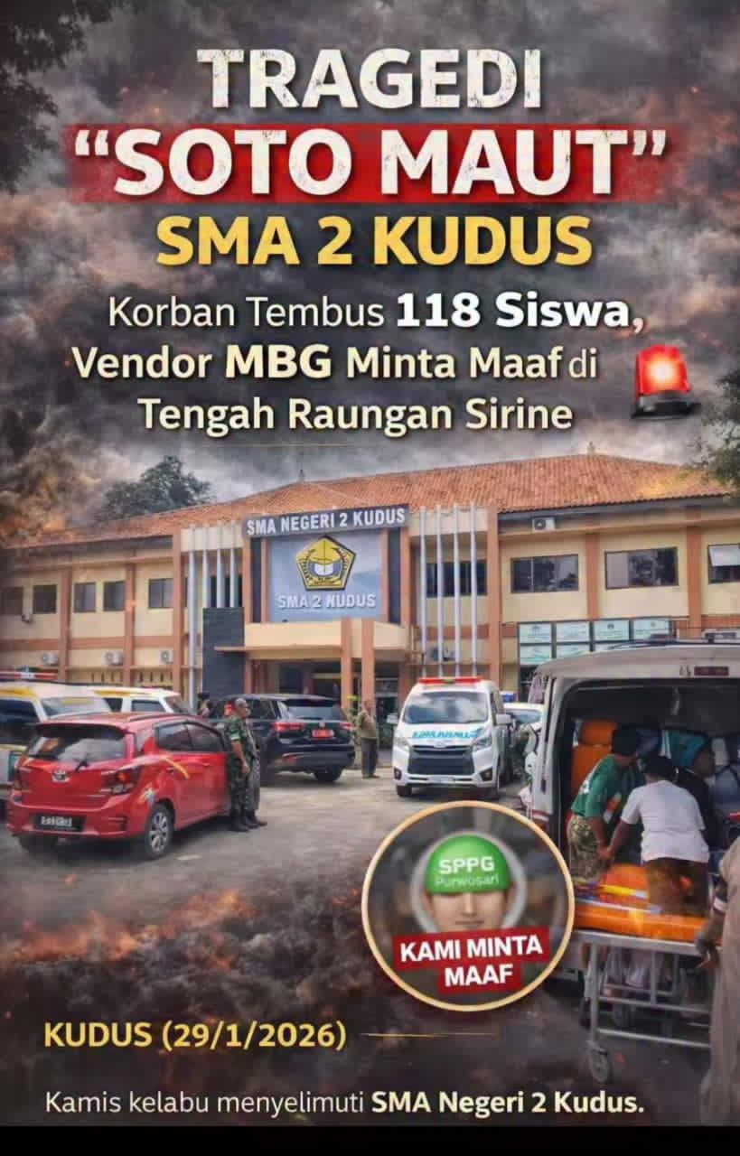 Raungan sirine dari puluhan ambulans yang membelah kemacetan Kota Kretek pada Kamis (29/1/2026) siang bukanlah bagian dari simulasi kebencanaan, melainkan jeritan nyata akibat ratusan siswa yang tumbang usai menyantap program Makan Bergizi Gratis (MBG).