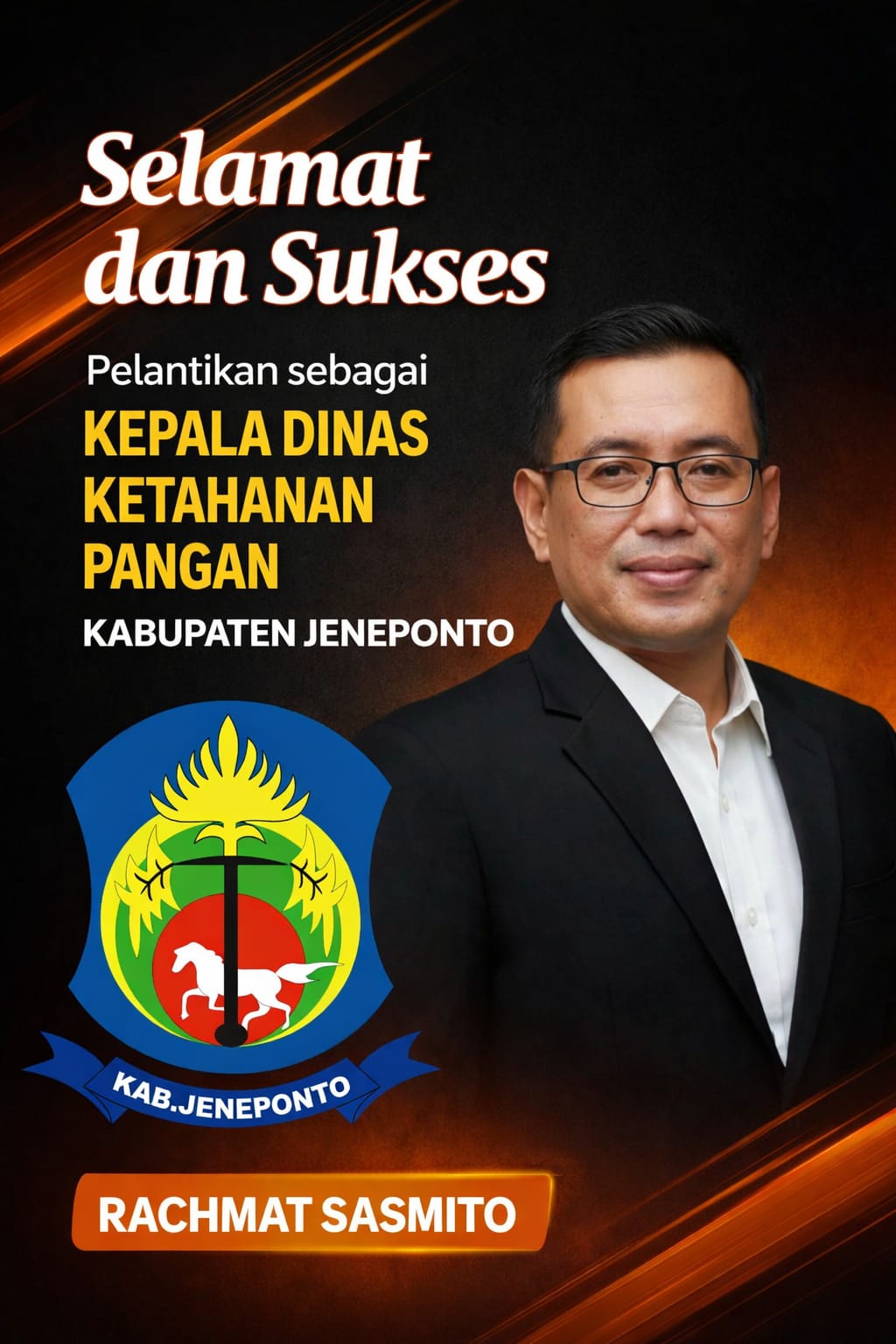 Ucapan tersebut disampaikan sebagai bentuk apresiasi dan dukungan terhadap amanah baru yang kini diemban oleh Rachmat Sasmito dalam memimpin Dinas Ketahanan Pangan di Kabupaten Jeneponto.