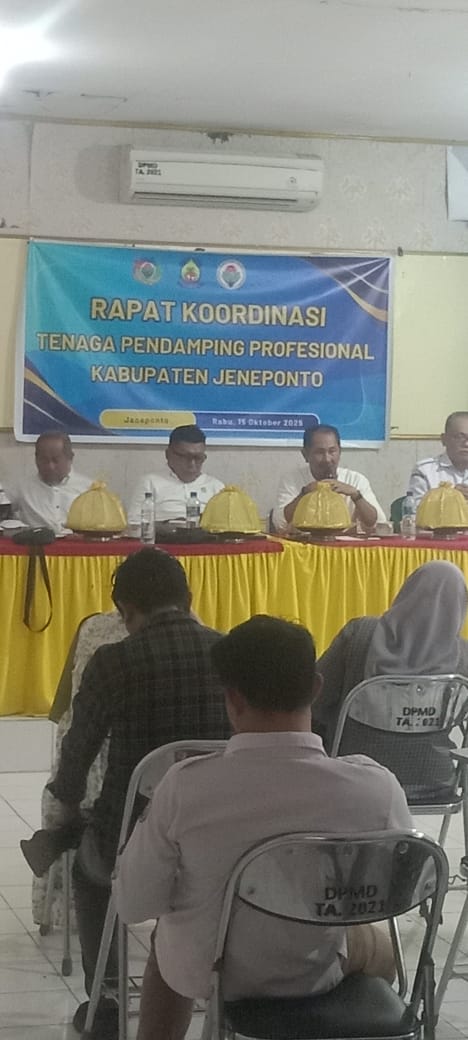 DetikSR.id Jeneponto, 15 Oktober 2025 — Dinas Pemberdayaan Masyarakat dan Desa (PMD) Kabupaten Jeneponto menggelar rapat koordinasi Tenaga Pendamping Profesional (TPP) Tahun 2025, yang berlangsung di Kantor PMD Jeneponto, Rabu (15/10/2025).