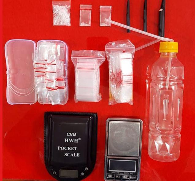 Kemudian peralatan edar yakni 2 unit timbangan digital, 2 ball plastik klip bening, serta wadah plastik bekas merk Pepsodent yang digunakan untuk menyimpan plastik klip. Dan alat pakai 1 buah alat hisap sabu (bong) dan 3 potongan pipet plastik modifikasi warna hitam.