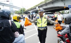 Meski arus lalu lintas tetap ramai, kegiatan berlangsung tertib dengan pengaturan dari personel Satlantas.