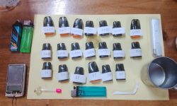 Dari tangan para pelaku, petugas mengamankan sejumlah barang bukti berupa 14 cartridge liquid mengandung zat sintetis, enam cartridge bekas pakai, satu buah cangklong, satu timbangan digital kecil, serta tiga tabung whipping gas.