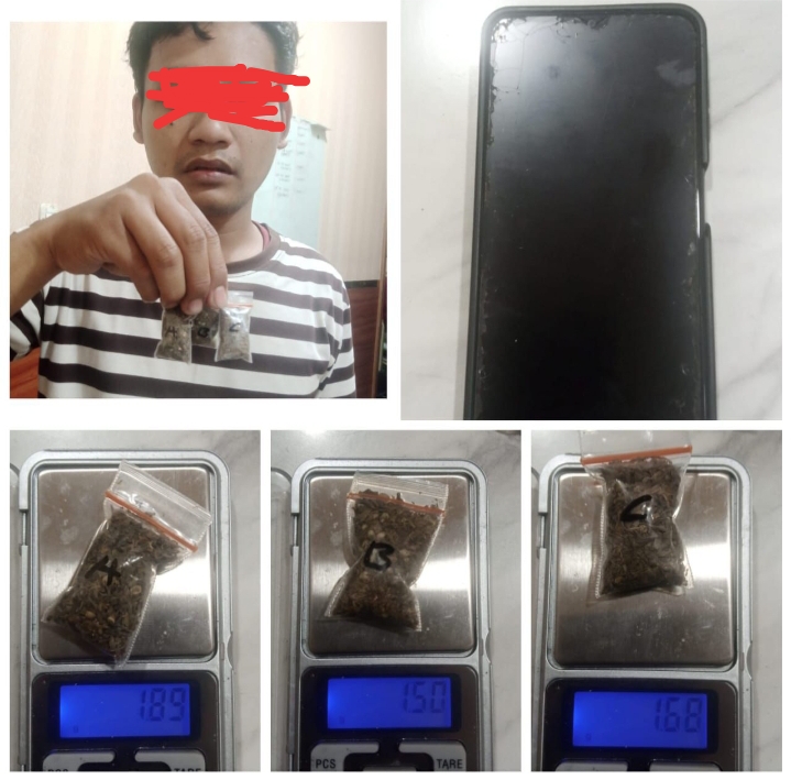 Total barang bukti yang berhasil diamankan yaitu: 3 (tiga) paket ganja dengan berat keseluruhan 5,09 gram bruto, 1 (satu) unit handphone yang diduga digunakan dalam transaksi.