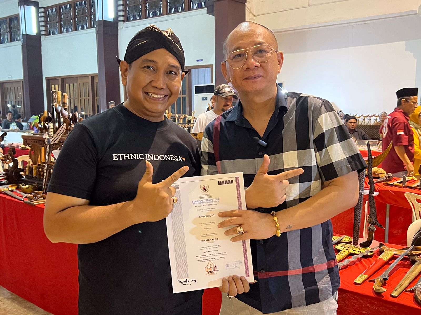 “Untuk menjadi kurator keris bersertifikat, seseorang harus menguasai 27 unit kompetensi yang ditetapkan BNSP. Proses ini tidak mudah. Ko Rivo menempuh uji kompetensi hingga dua kali sebelum akhirnya dinyatakan kompeten,” jelas Agung.