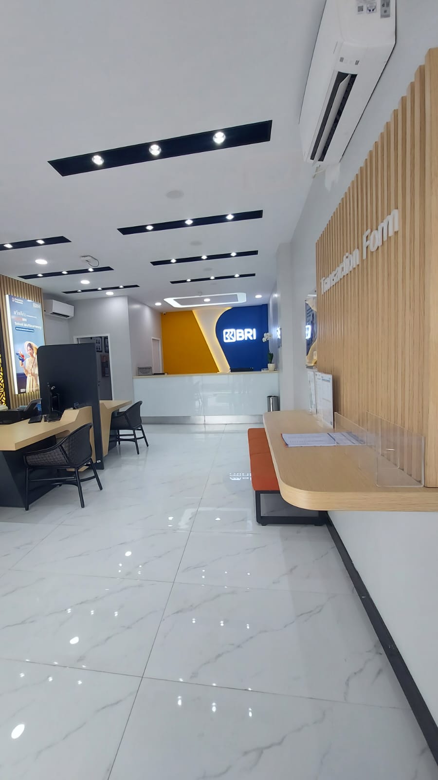Nikmati pengalaman perbankan yang lebih menyenangkan dengan desain interior yang hangat, fungsional, dan estetis. Material berkualitas dan pencahayaan yang optimal akan membuat setiap kunjungan Anda semakin berkesan.