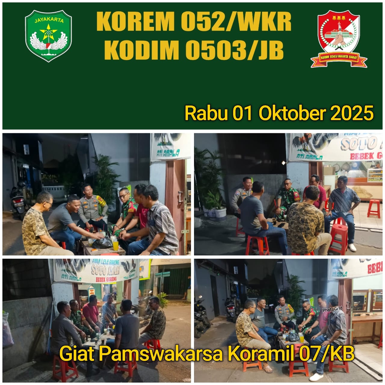 DetikSR.id Kodam Jaya Jakarta – Babinsa Koramil 07/KB, Serka Mustaqim, bersama Bimas dan warga setempat, melaksanakan pemantauan Siskamling (Sistem Keamanan Lingkungan) sebagai bagian dari PAM (Pengamanan) Swakarsa di Pos RT 012/06, Jl. Haji Husein, RT 012/06, Kelurahan Joglo, Kecamatan Kembangan, Jakarta Barat, pada Rabu malam (1 Oktober 2025).