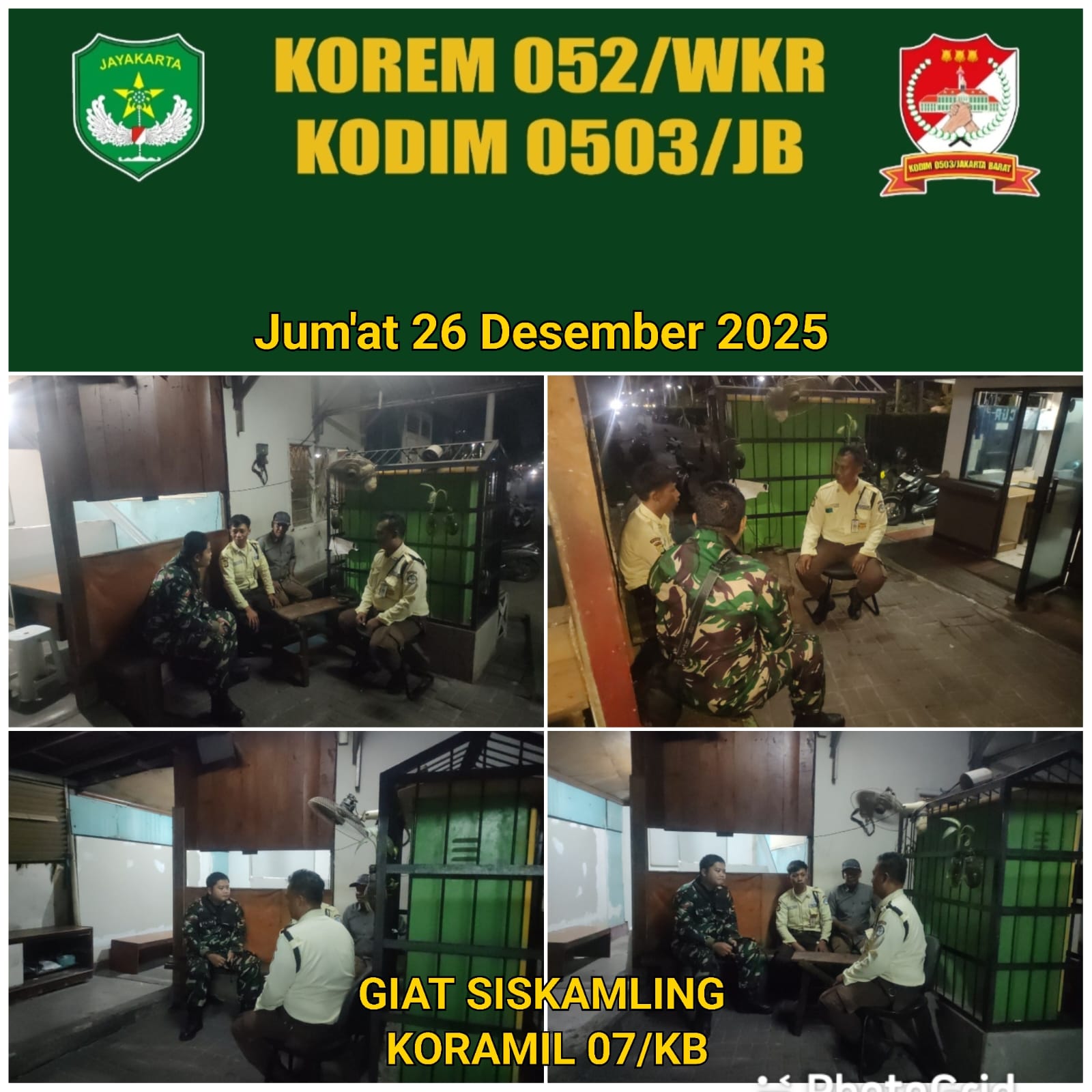 DetikSR.id Kodam Jaya Jakarta – Tingkatkan kondusifitas wilayah menjelang tahun baru 2026, Babinsa Koramil 07/kembangan melaksanakan siskamling PAM Swakarsa bertempat di Jl. Puri Kencana, RT.11/RW 7, Kel. Kembangan Selatan, Kec. Kembangan, Kota Jakarta Barat, Daerah Khusus Ibukota.jumat malam 26 Desember 2025