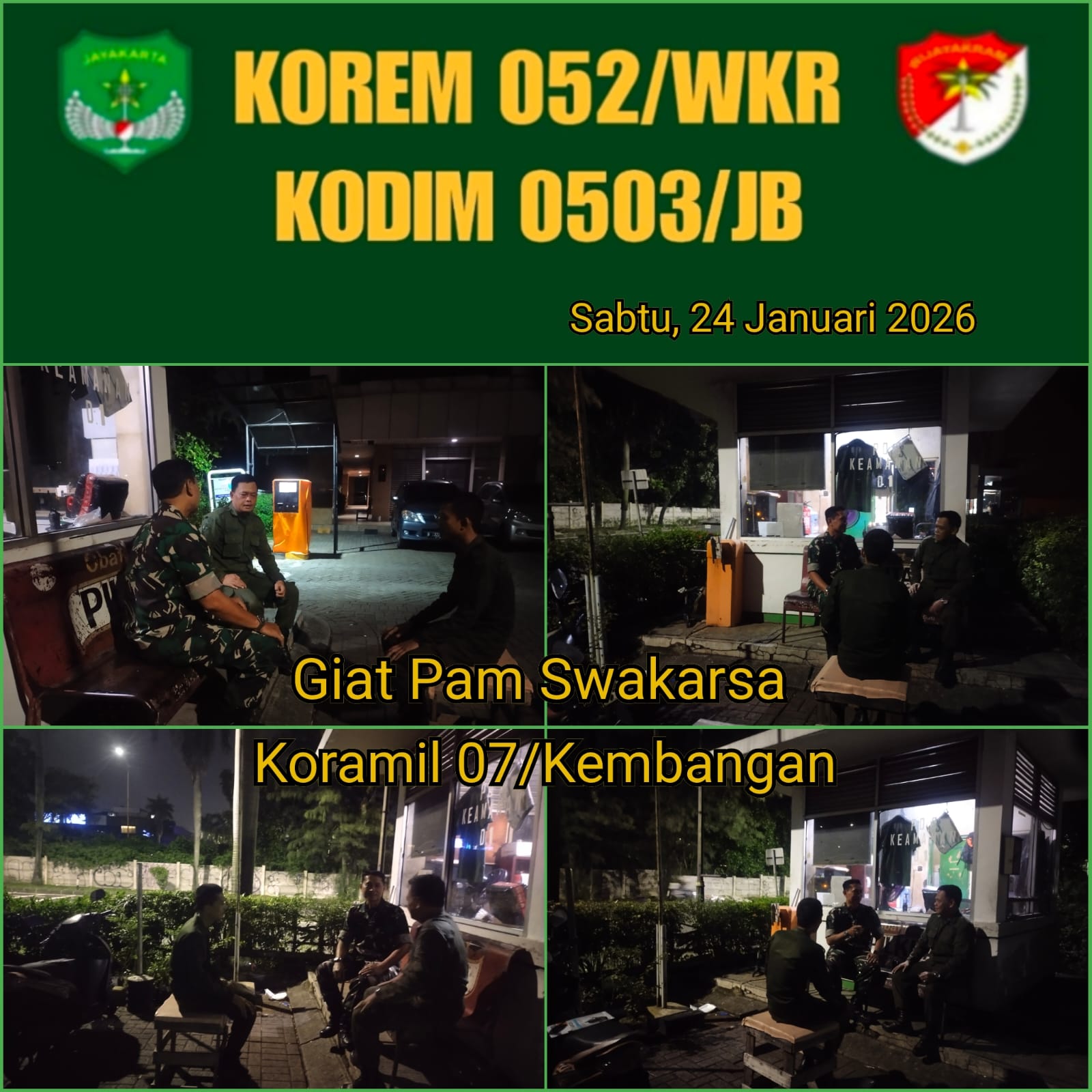 DetikSR.id Kodam Jaya Jakarta – Ciptakan kondusifitas wilayah, Babinsa Kel. Meruya Utara Peltu Arief W melaksanakan Siskamling /Pam Swakarsa dan Sambang dialogis dengan wanra yang sedang jaga malam ini di Rukan Pos Wanra blok D1 Jl. Aries niaga RT. 04/06 Kel. Meruya Utara Kec Kembangan Jakarta Barat. Sabtu malam 24 Januari 2026