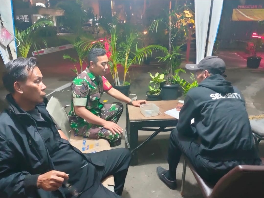 Dalam kegiatannya Sertu Rahmat melakun sambang dialogis dengan anggota security yang sedang jaga malam. Di kesempatan tersebut Sertu Rahmat menyampaikan arahan dan juga himbauan Kamtibmas dan kewaspadaan terhadap lingkungan sekitar.