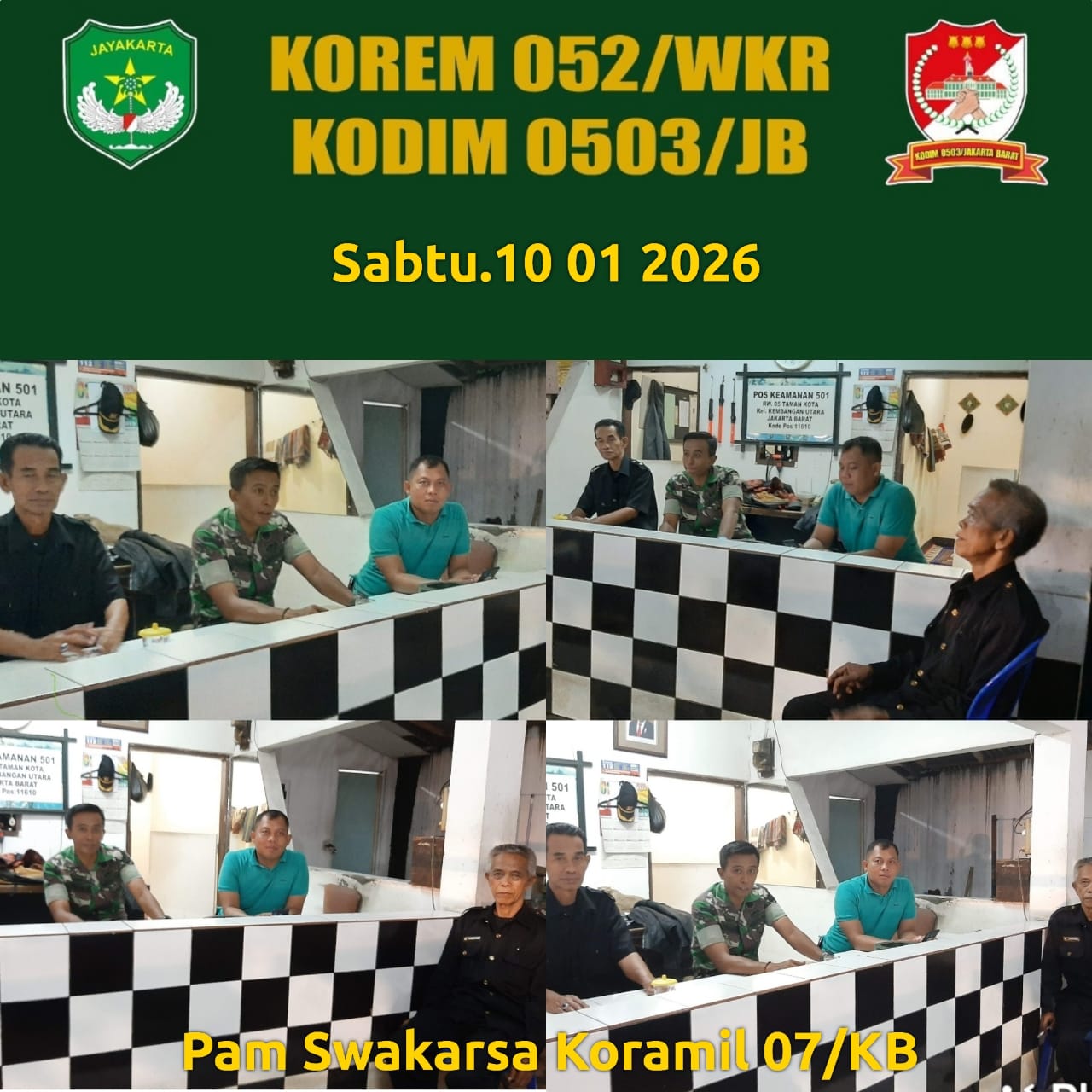 DetikSR.id Kodam Jaya Jakarta – Babinsa Koramil 07/Kembangan Serka Yulianto melaksanakan kegiatan monitoring Siskamling/Pam Swakarsa dan sambang dialogis dengan anggota keamanan dan juga warga bertempat di Pos Keamanan Taman kota RW.05 Kel. Kembangan Utara  Kec. Kembangan, Kota Jakarta Barat. Sabtu malam 10 Januari 2026