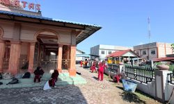 Mereka bersama-sama membersihkan halaman masjid, mengangkat sampah, merapikan lingkungan sekitar, serta memastikan area rumah ibadah tersebut tampak bersih dan tertata dengan baik.