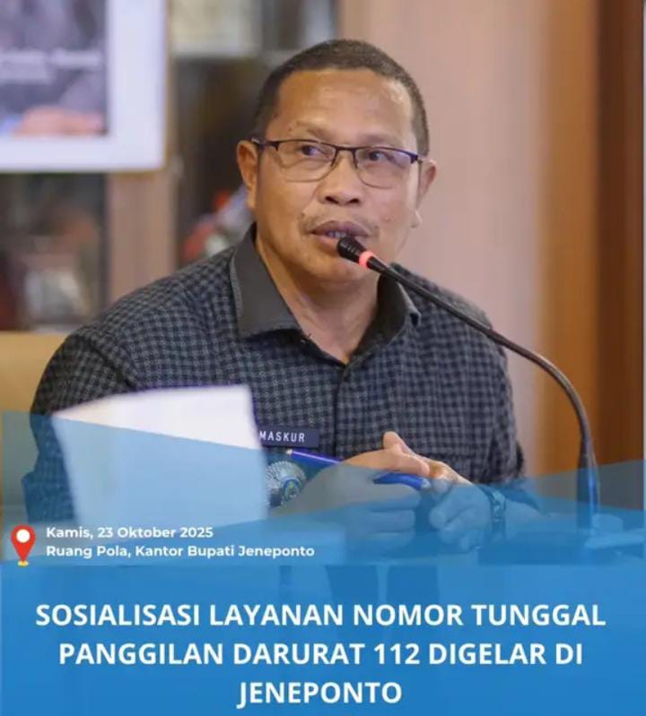 DetikSR.id Jeneponto, 23 Oktober 2025 — Kementerian Komunikasi dan Digital (Komdigi) Republik Indonesia melaksanakan kegiatan Sosialisasi Layanan Nomor Tunggal Panggilan Darurat (NTPD) 112 di Ruang Rapat Bupati Jeneponto. Kegiatan ini dihadiri oleh tim dari Kementerian Komdigi yang dipimpin oleh Agung Setio Utama selaku Ketua Tim, bersama anggota Rismanto, Irwan Abdul Rahman, dan Hari Rianto.
