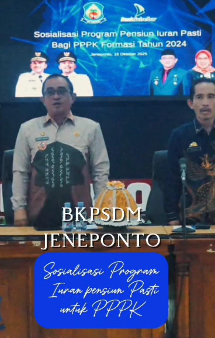 DetikSR.id Jeneponto, Kamis 16 Oktober 2025 — Pemerintah Kabupaten Jeneponto melalui Badan Kepegawaia din dan Pengembangan Sumber Daya Manusia (BKPSDM) menggelar kegiatan Sosialisasi Program Iuran Pensiun Pasti bagi Pegawai Pemerintah dengan Perjanjian Kerja (PPPK). Kegiatan berlangsung di Ruang Pola Kantor Bupati Jeneponto.