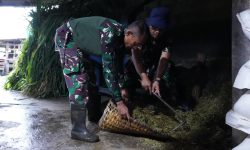 Kegiatan tersebut berlangsung di Dusun Barurejo, Desa Krisik Kecamatan Gandusari Kabupaten Blitar, Sabtu (14/2/2026). Anggota Satgas TMMD Ke-127 tampak berbaur bersama warga, membantu aktivitas keseharian peternak sapi perah setelah menyelesaikan sasaran fisik pembangunan.