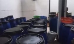 Puluhan drum berisi arak CIU yang masih dalam tahap fermentasi.