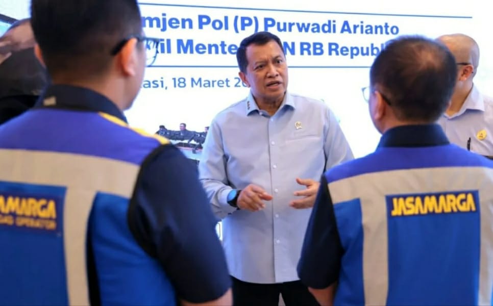 DetikSR.id Jakarta, Wakil Menteri Pendayagunaan Aparatur Negara dan Reformasi Birokrasi (PANRB), Purwadi Arianto, melakukan pengecekan langsung kesiapan pengelolaan lalu lintas di pusat kendali jalan tol milik PT Jasa Marga (Persero) Tbk melalui fasilitas Jasa Marga Tollroad Command Center (JMTC) di Bekasi.