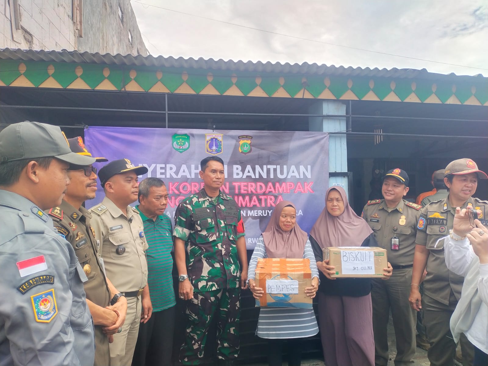 Ratusan dus bantuan untuk para korban bencana alam di Sumatera diterima langsung oleh Babinsa Koramil 07/Kembangan, Peltu Arief W., yang mewakili Koramil 07/KB. Bantuan tersebut diserahkan oleh Ketua RW 011 Kelurahan Meruya Utara, Ahmad Ceung, disaksikan oleh masyarakat setempat dan perwakilan dari kelurahan.