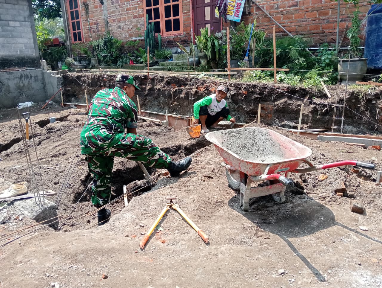 Wujud Kemanunggalan TNI Dan Rakyat, Babinsa Bence Bantu Gali Pondasi Rumah Warga