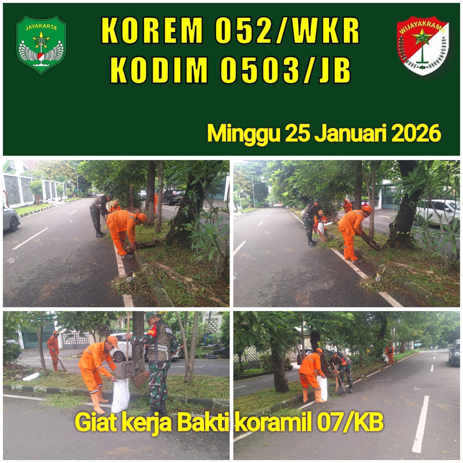 DetikSR.id Kodam Jaya Jakarta – Teguhkan budaya bersih dan sehat Babinsa Koramil 07/Kembangan melaksanakan Karya Bakti Pembersihan Lingkungan yang di pusatkan di Komplek Alfa Indah Jl. Komplek Alfa Indah Rt 08/05 Kel.Joglo, Kec. Kembangan, Jakarta Barat. Minggu 25 Januari 2026